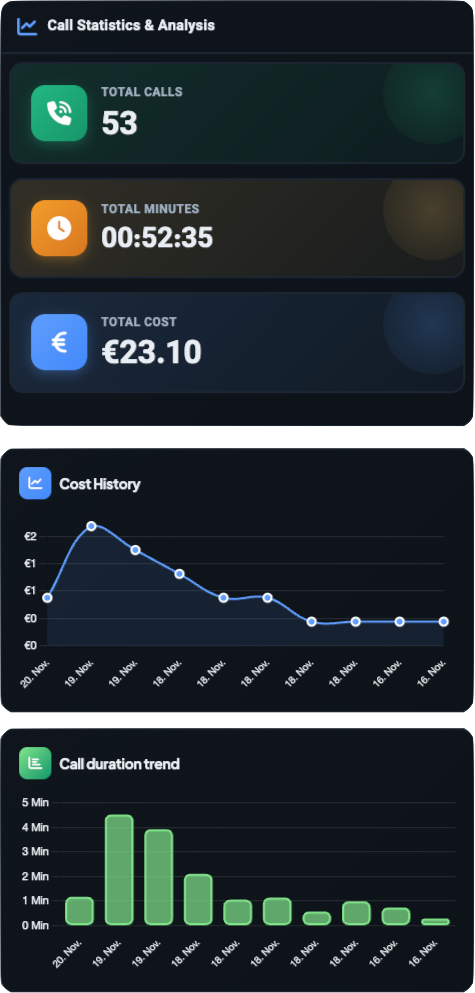 • Call frequency: Number of calls and average costs per day